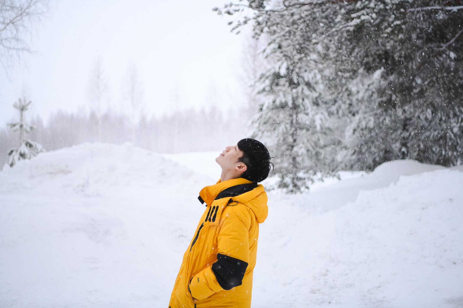 เสื้อกันหนาวที่ใส่สวยที่สุดกับภาพหิมะ คือเสื้อกันหนาวที่ใส่แล้วอบอุ่น ใส่สบาย น้ำหนักเบา และที่สำคัญคือเราชอบบบบ ค่า 😘 เพราะเราต้องใส่เป็นเวลานานหลายชั่วโมงท่ามกลางหิมะอันหนาวเย็นนะค่า”