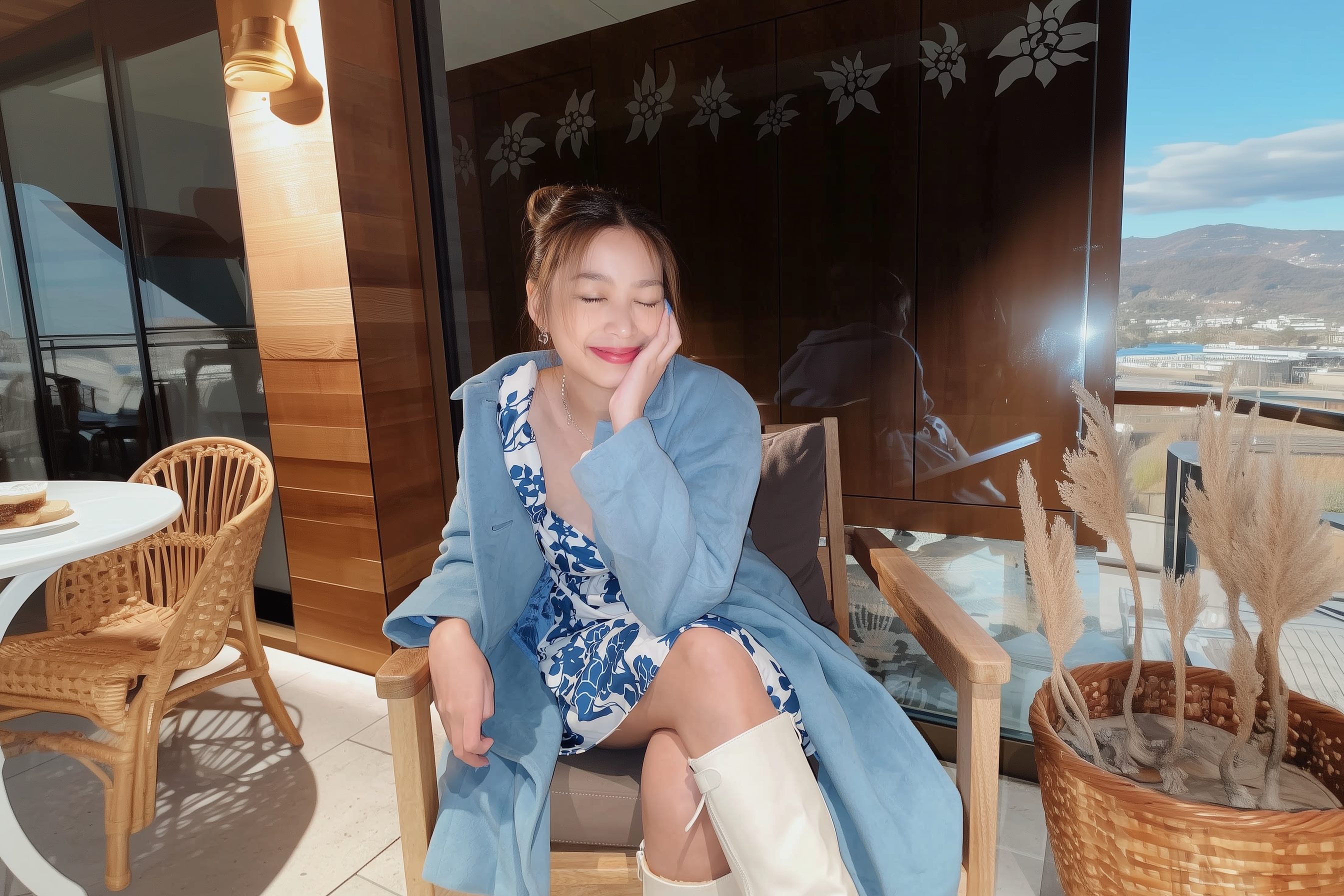 ทริปสวิสช่วงฤดูใบไม้ผลิ อากาศประมาณ 15 องศา นะคะ overcoat ผ้าวูล สีพาสเทล กับบูทยาวไม่หนาให้ลุคแบบสวยหวานม๊ากกกเลยค่ะ