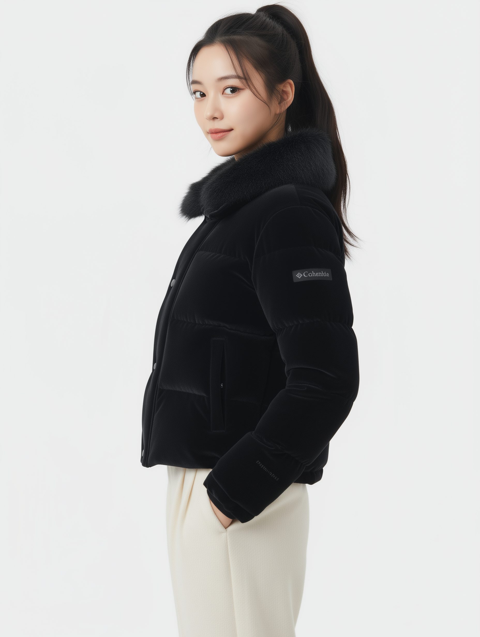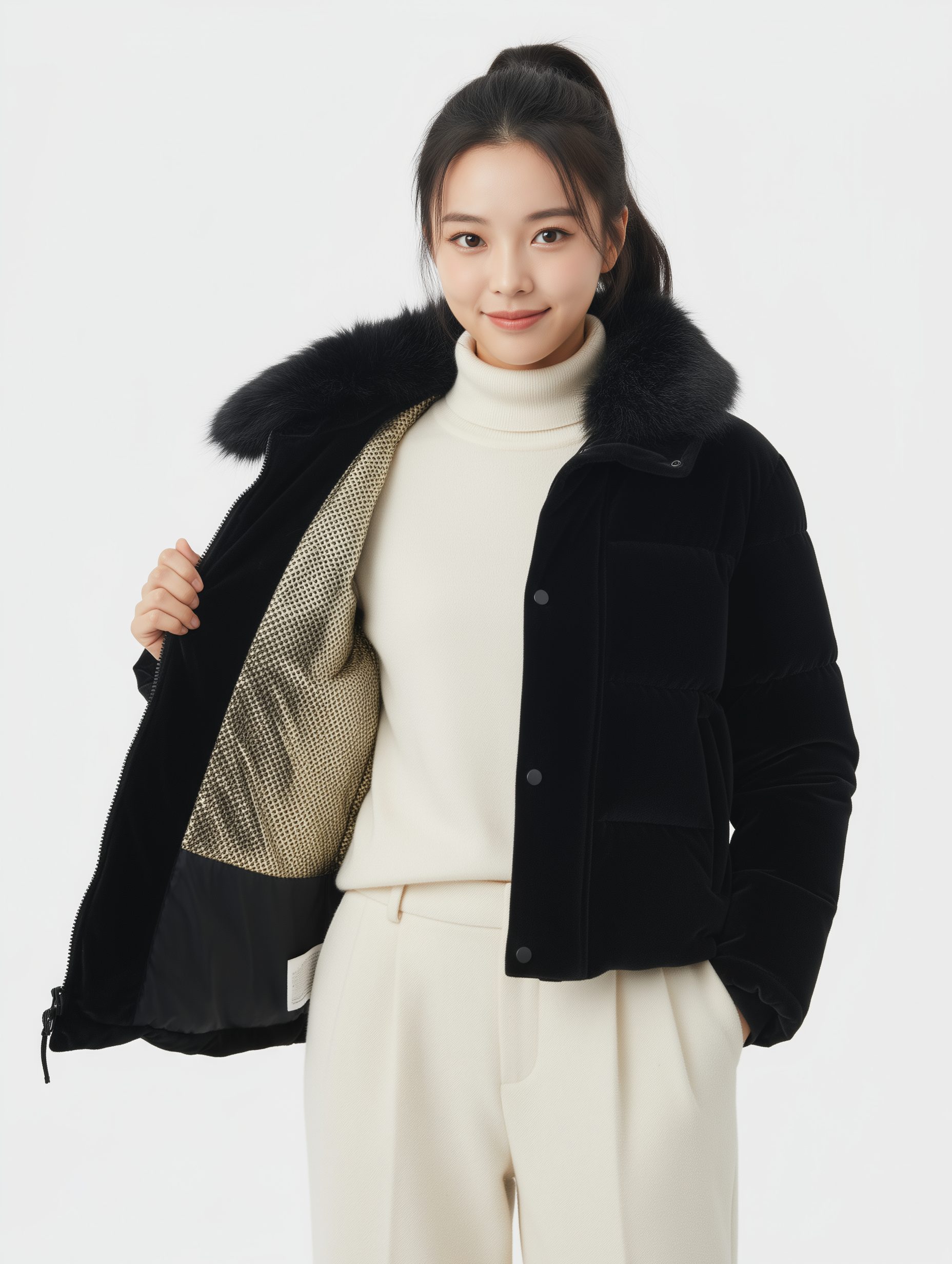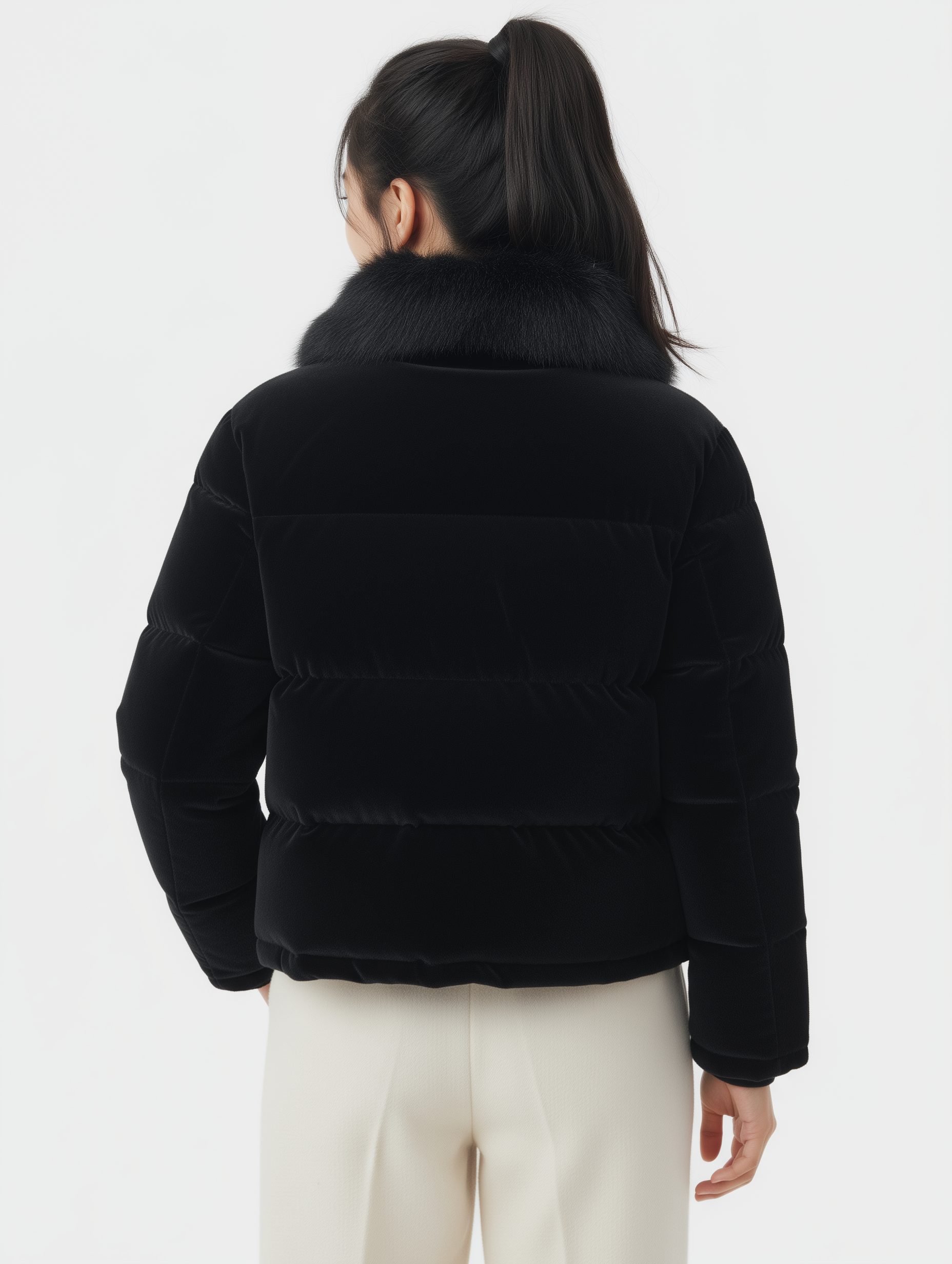 เสื้อขนห่านผ้ากำมะหยี่สีดำมีเฟอร์