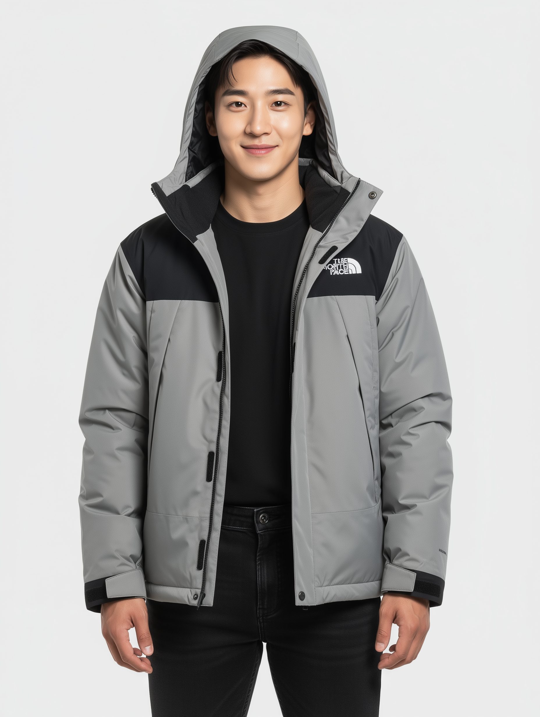 NF เสื้อขนห่านสีเขียวคอดำมีฮู้ดถอดได้ 42/M