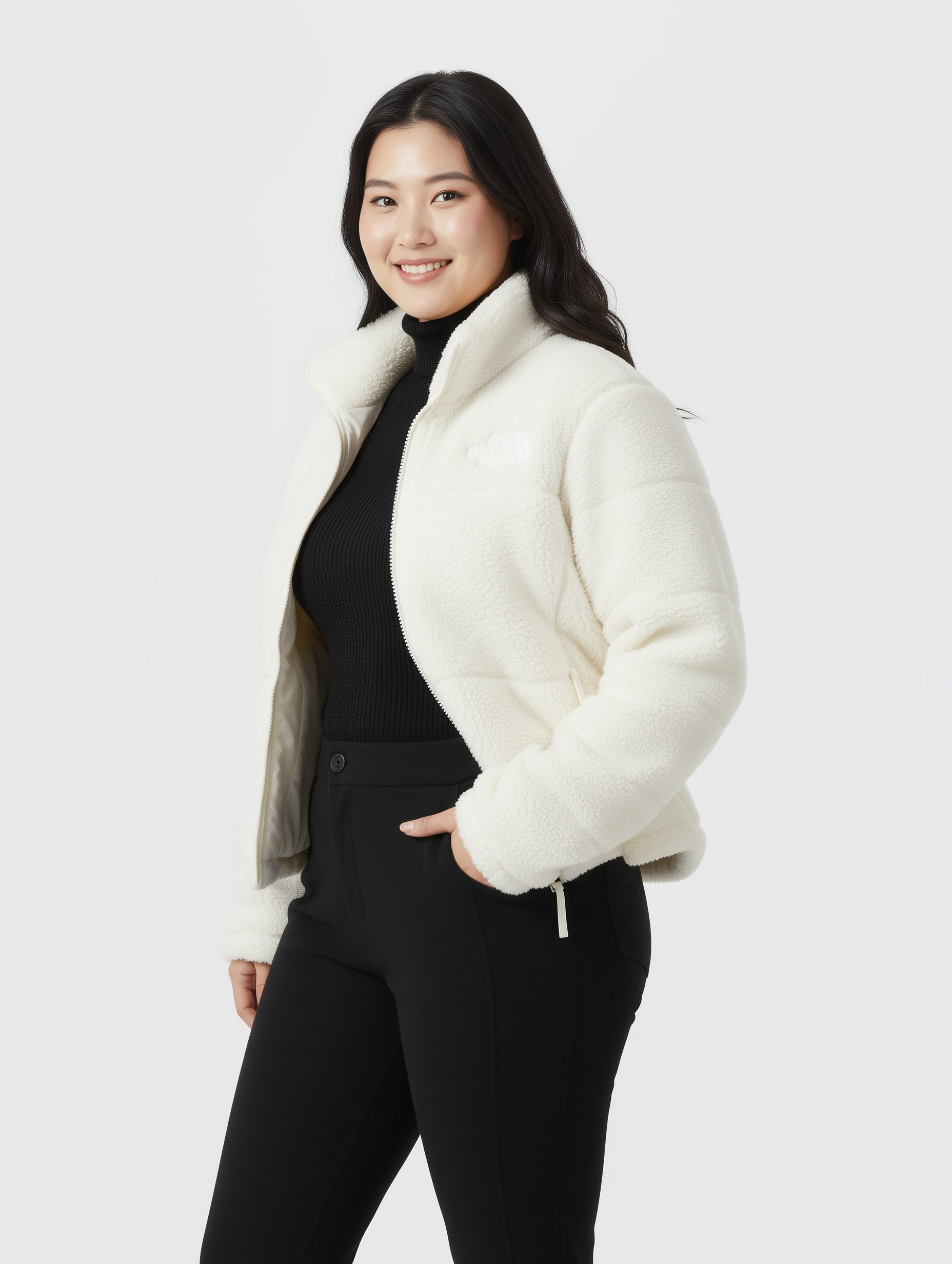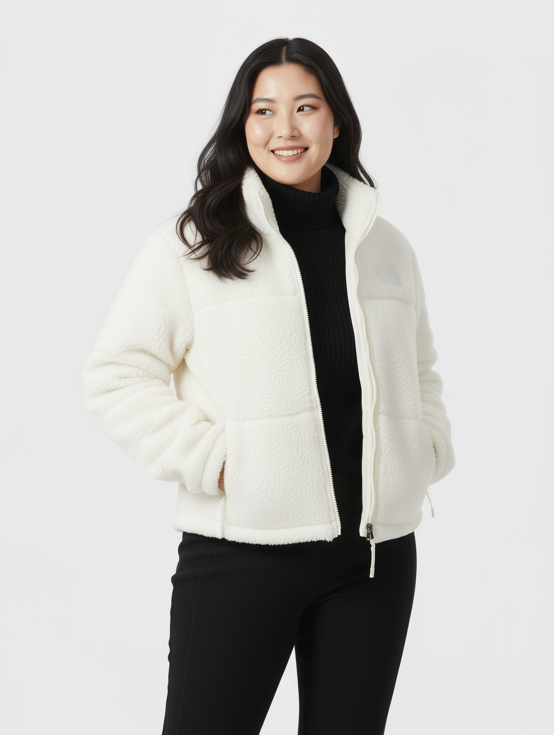 TNF เสื้อขนเป็ดครอปขนแกะสีขาว