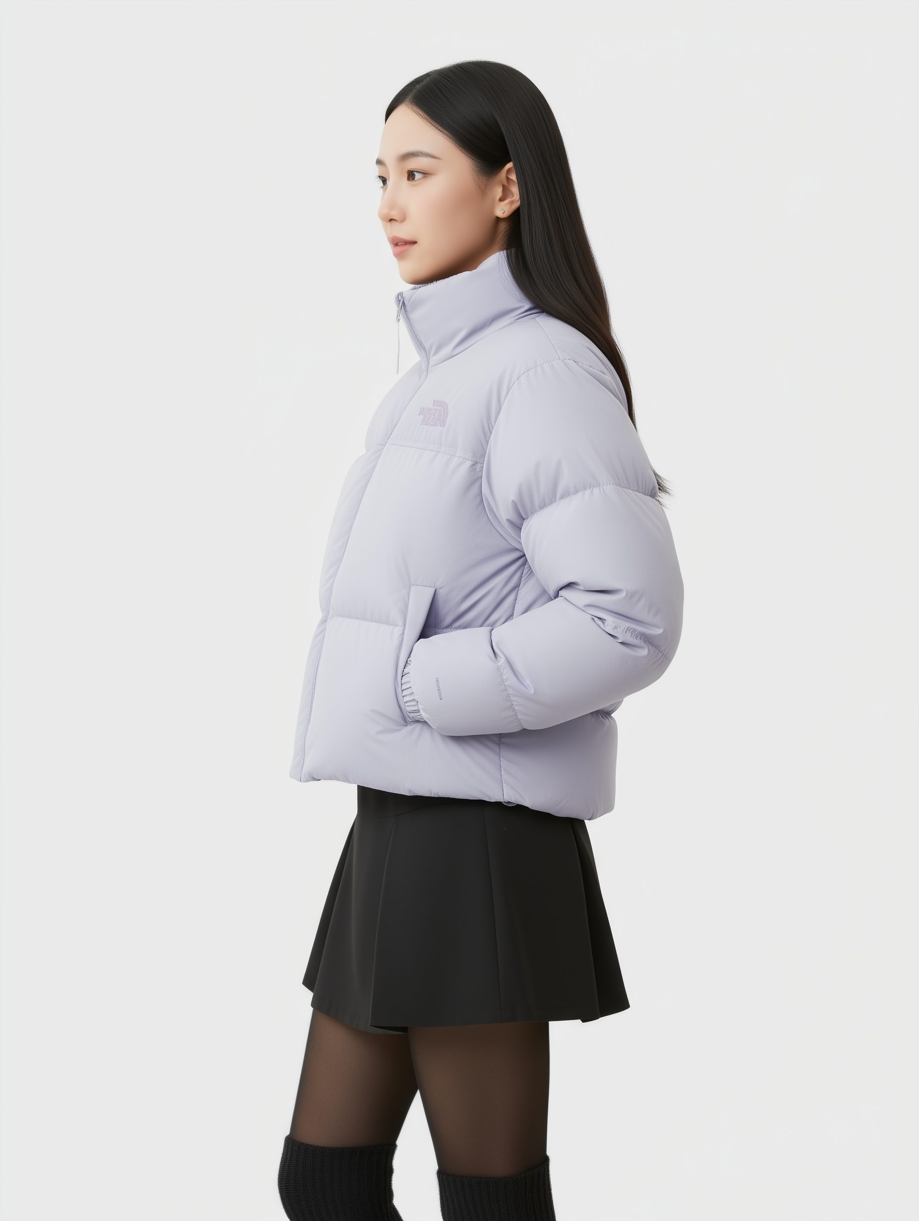 NF เสื้อขนห่านสีม่วงทรงครอปเอวปรีบได้ 44